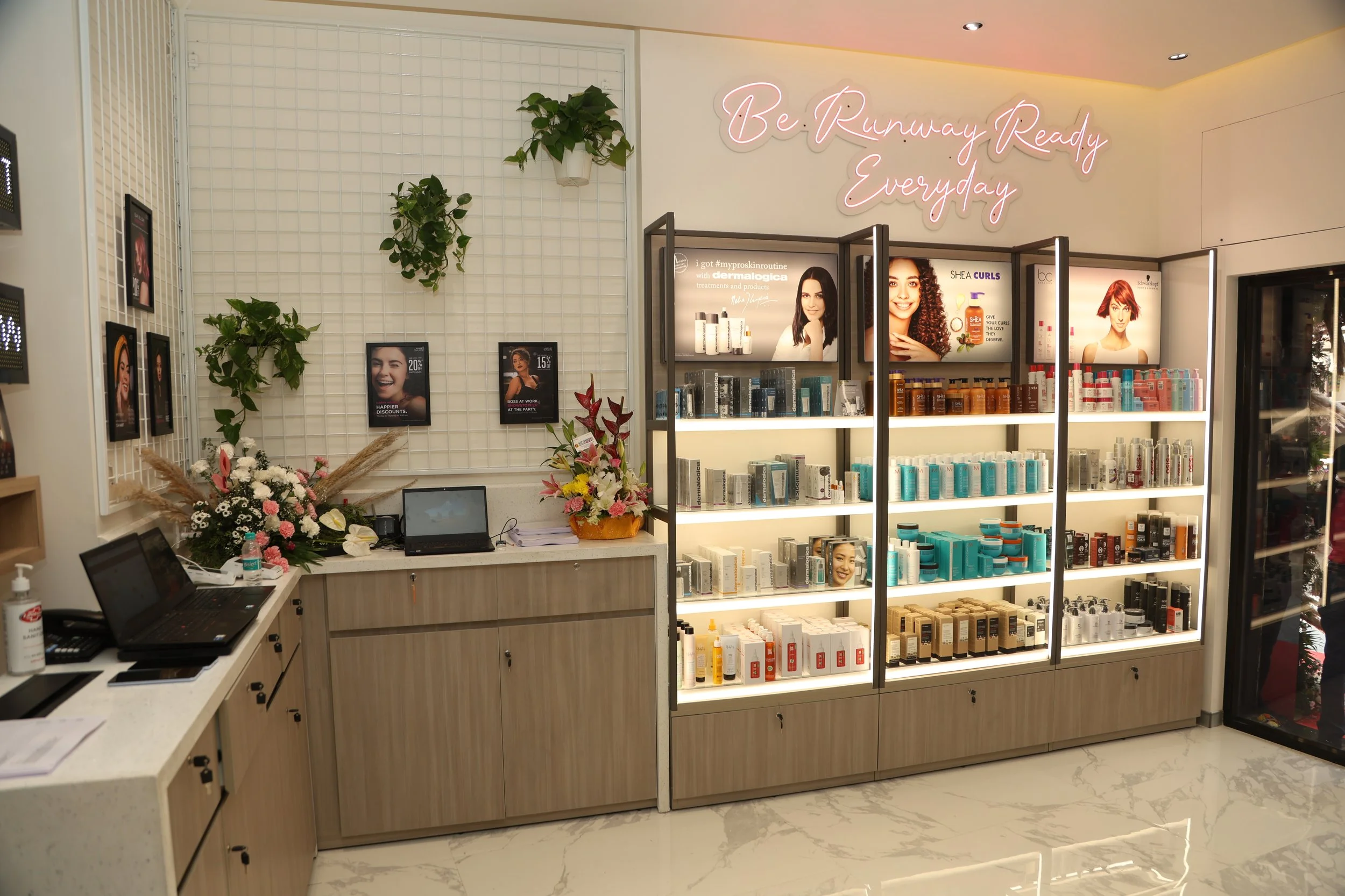 We made sure to include Lakme's vision when planning the space. From the beginning, the main goal was to capture the glamorous feeling of being backstage at Lakme Fashion Week. We wanted every client who walks through our doors to feel like they're part of the excitement.