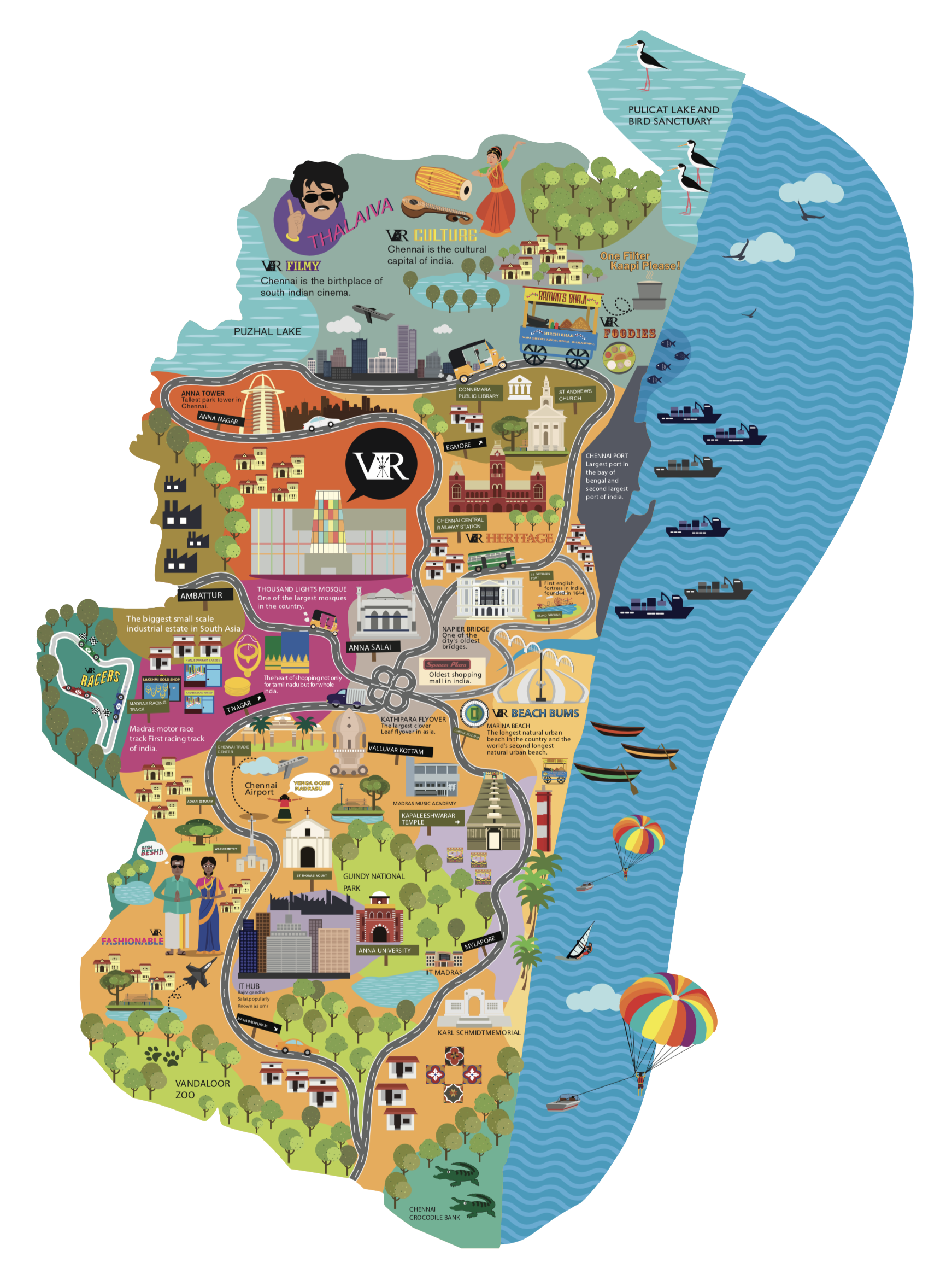 VR Chennai, a curator of engaging platforms for immersive experiences, promoting locally relevant programmes related to retail, food, music, art and entertainment, is one of Virtuous Retail Group's flagship centers. IdeaSpice worked as consultants to deliver a comprehensive wayfinding and place-making program across their centres. The project allowed the team to craft a unique experience across their centre and also paved the way for future centre developments.